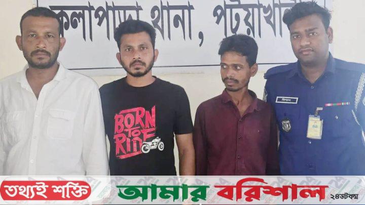 রোববার (১ মার্চ) দুপুরে কলাপাড়া পৌর শহরের উকিল পট্টি এলাকায় অভিযান চালিয়ে তাদের গ্রেপ্তার করা হয়। গ্রেপ্তারকৃত প্রধান অভিযুক্ত সুমন ফকির নীলগঞ্জ ইউনিয়ন স্বেচ্ছাসেবক দলের আহ্বায়ক। তার অন্য দুই সহযোগী হলেন সজীব ফকির ও মো. রাসেল।
