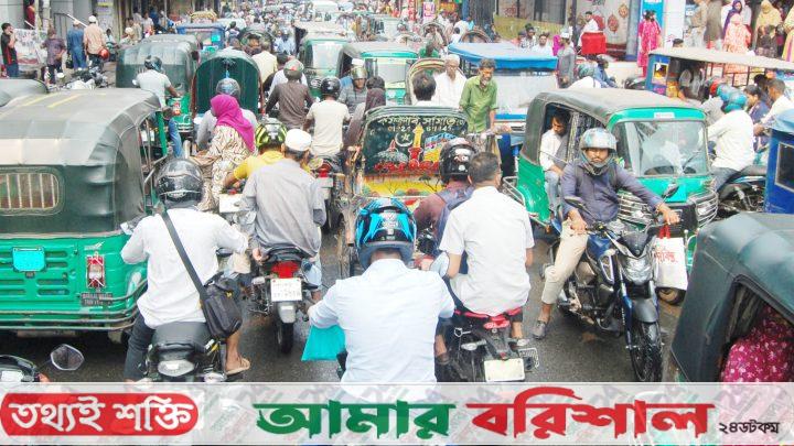 কয়েক দিন ধরে তীব্র যানজটে বরিশাল নগরীর বাসিন্দারা অতিষ্ঠ হয়ে উঠেছেন। ঈদ সামনে রেখে সড়কে গাড়ির চাপ বেড়ে যাওয়াকে এর প্রধান কারণ হিসেবে মনে করা হচ্ছে। নগরীর একাধিক এলাকায় দিনের বেশির ভাগ সময় যানজট দেখা যাচ্ছে। রোজার মধ্যে তীব্র যানজটের কারণে নগরবাসীকে দুর্ভোগ পোহাতে হচ্ছে।