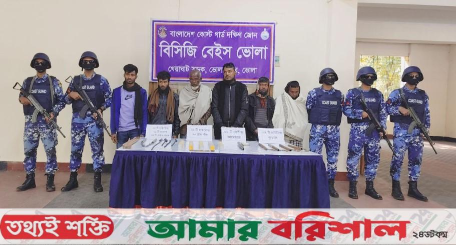 ভোলায় বিপুল পরিমাণ হাতবোমা-আগ্নেয়াস্ত্রসহ আটক ৬