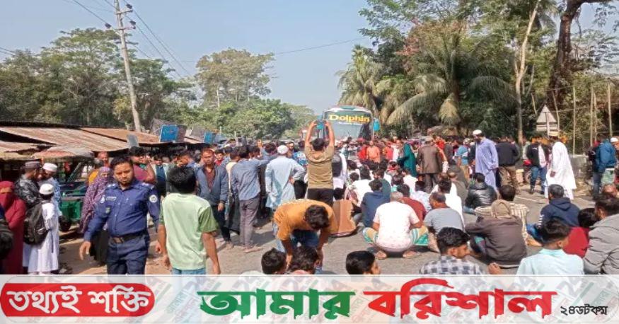 গৌরনদীতে ভ্যানচালক হত্যার প্রতিবাদে মহাসড়ক অবরোধ